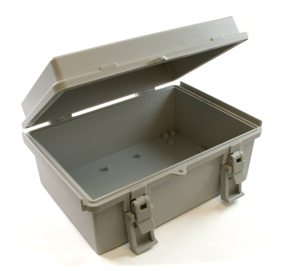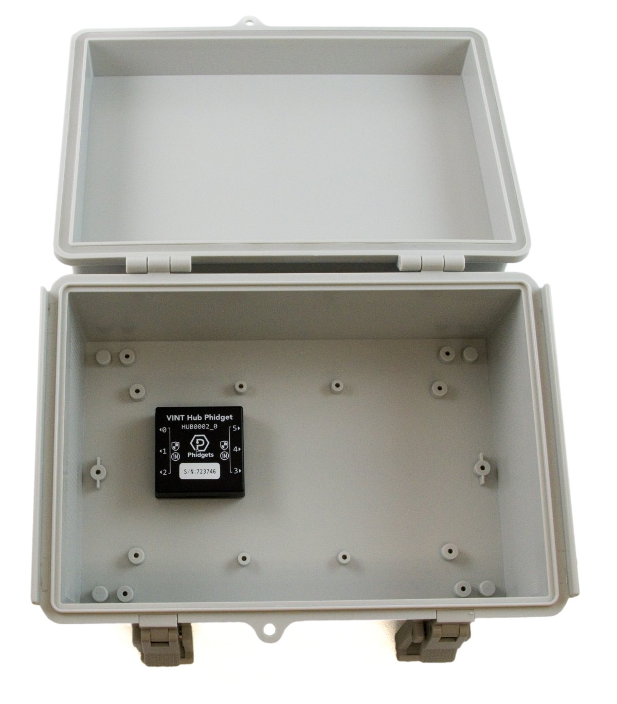 With an IP65 rating, this enclosure will protect your Phidgets from the elements. With proper installation of the foam rubber sealing ring, even the heaviest of rainstorms won't get through. The latched lid means you don't even need a screwdriver to get at the equipment inside.