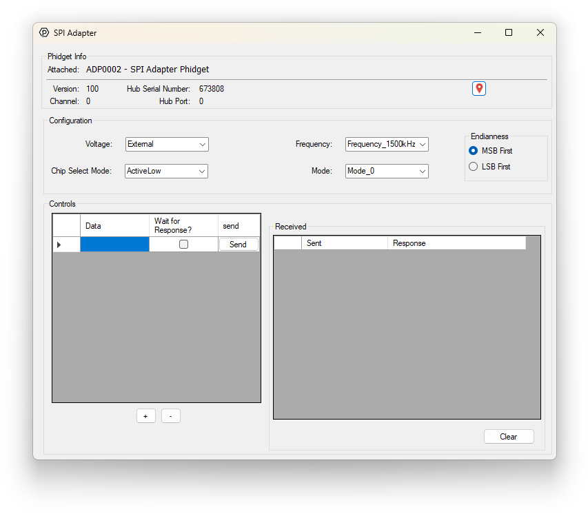 You can connect the SPI Adapter Phidget directly to your computer via USB or through a VINT Hub Phidget.
